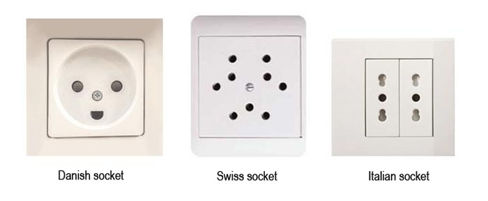 Neben deutschen und französischen Steckdosen gibt es in Europa verschiedene Arten von Steckdosen, z. B. dänische, schweizerische und italienische Steckdosen.